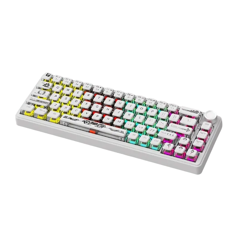 Teclado REDRAGON ELF PRO TRANSPARENT WHITE K649 | Crystal Switch, Inglés, Tri-Mode (USB/2.4G/BT)